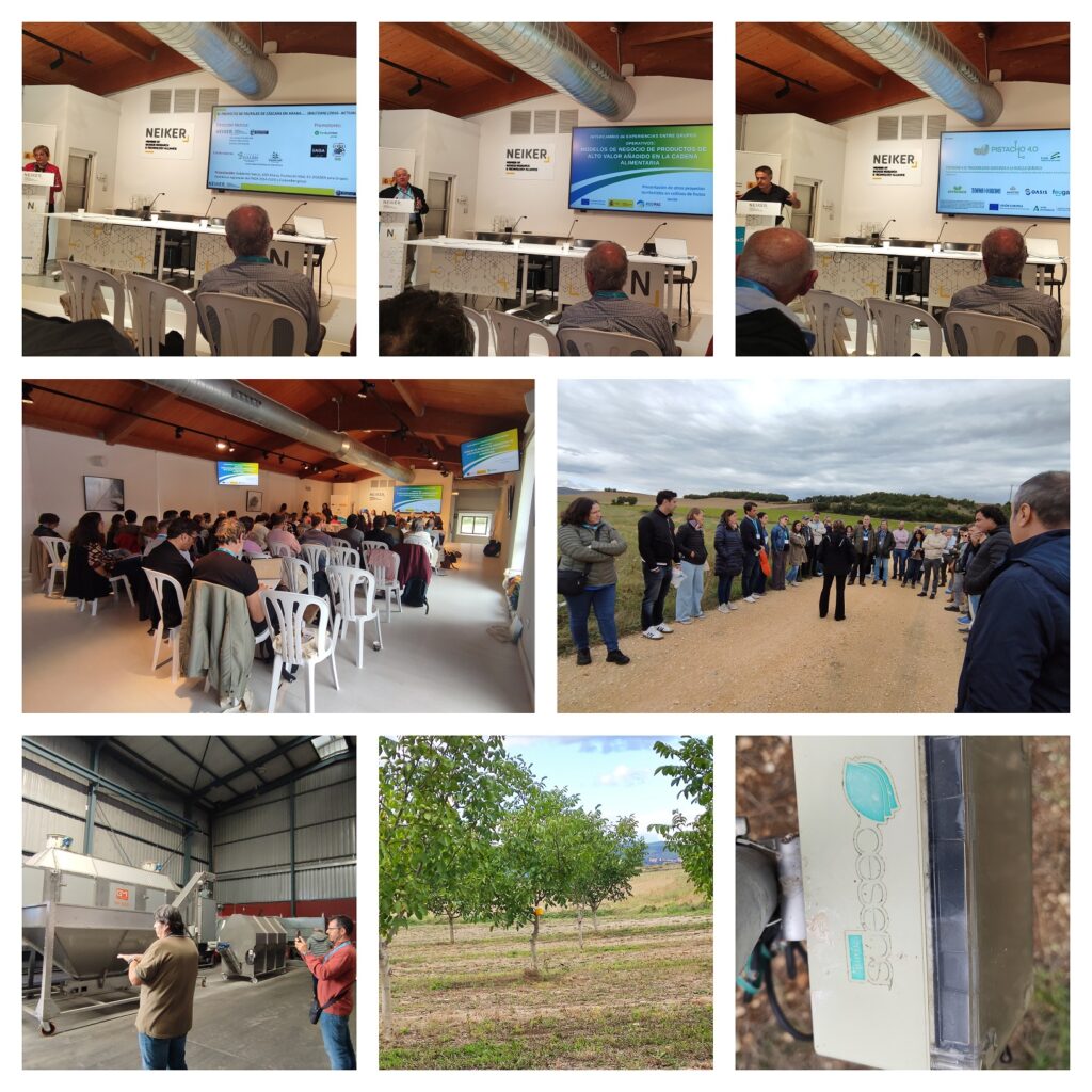 También se presentaron dos proyectos en los que participa el centro Neiker. El primero, de cultivos alternativos, frutales de cáscara, que investiga la viabilidad de nogales, avellanos y almendros como cultivos alternativos; en colaboración con agricultores locales, aporta conocimiento clave para diversificar la agricultura frente a retos como heladas, plagas o sequías. Se visitó una finca experimental de cultivo de nueces y las instalaciones de los Hermanos Torre en Ribavellosa, donde se ha mostrado la viabilidad técnica del cultivo de este fruto seco. Y el segundo, el Grupo Operativo LARRESNE, para testar una herramienta digital de control de la alimentación de ganado vacuno y ovino para la certificación de leche de pasto, con visita a una explotación ganadera.