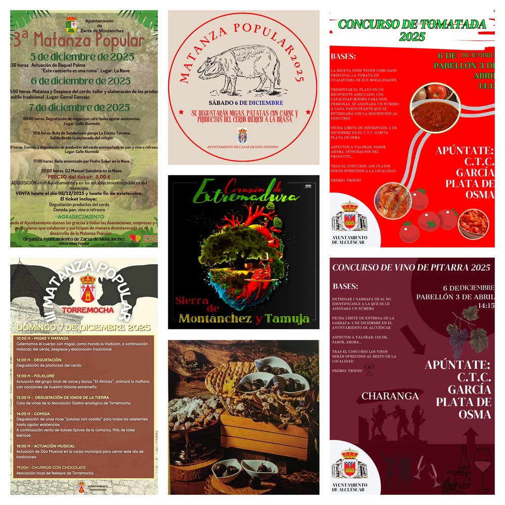 - Zarza de Montánchez: Su 3ª Matanza Popular se extiende a lo largo de estos tres días, incluyendo la matanza, despiece y elaboración tradicional de productos, culminando con rutas de senderismo y comidas populares que integran a vecinos y visitantes.