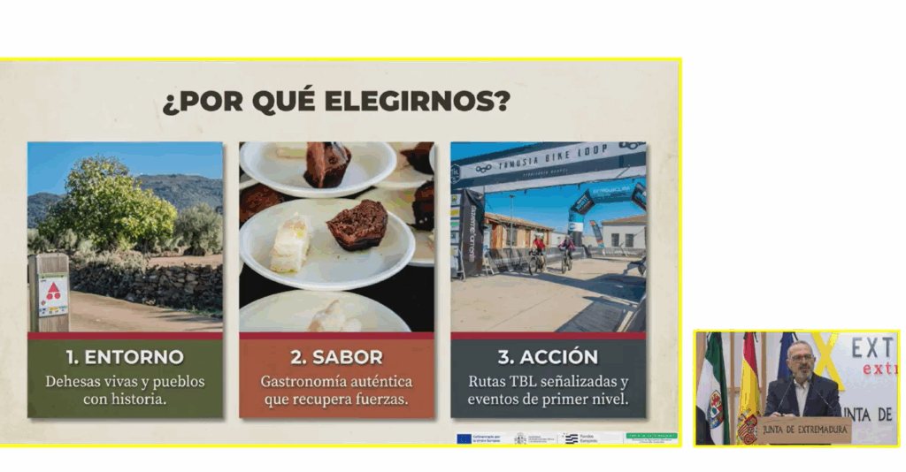 Manuel Llanos, de Extremeñamente, agradeció el apoyo al Gravel, en concreto a la prueba Tamusia Bike Loop, que transcurre por la Sierra de Montánchez, donde hay unos caminos perfectos para la práctica de este deporte. “Es una disciplina nueva pero con gran aceptación. Unir el Gravel con gastronomía es todo un acierto. Será el 28 de febrero en Torreorgaz y ya tenemos muchos corredores confirmados”
