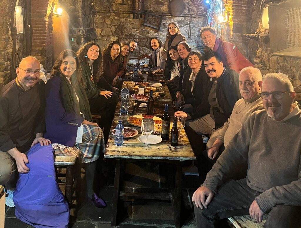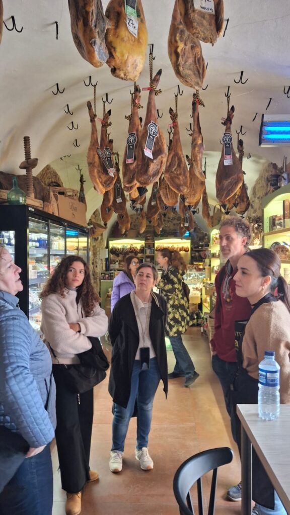 - Jamón y Reconocimiento Repsol en Montánchez: La mañana concluyó con una visita a la Bodega de Pérez en Montánchez, Carlos Pérez obsequio al grupo con una excelente mesa de degustación y compartió la experiencia de obtener el prestigioso “Solete Repsol”.